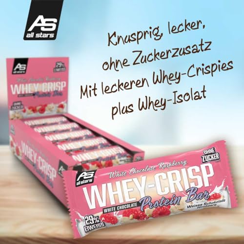Die ALL STARS Eiweißriegel bieten mit 15g Eiweiß pro 50g Riegel einen beeindruckendenanteil von 30%. Die Kombination aus schnell verwertbarem Whey-Protein-Isolat und knackigen Whey-Crispies sorgt für eine optimale Nährstoffversorgung. Ideal für alle, die ihre Eiweißzufuhr erhöhen möchten.