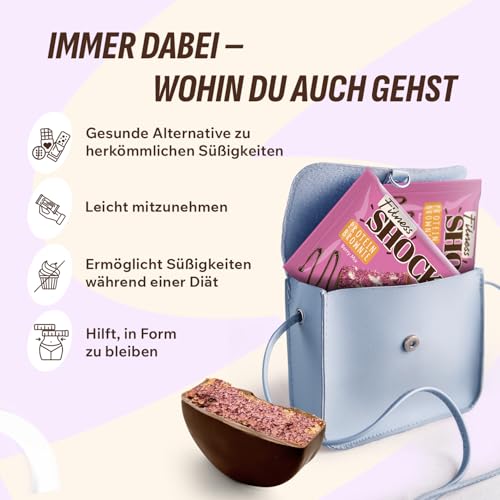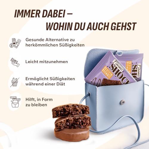 Entdecken Sie die unvergleichliche Schokoladentextur von FitnesSHOCK. Jeder Biss ist zart und weich, sodass Sie das süße Vergnügen ohne schlechtes Gewissen genießen können. Unsere Brownies sind so konzipiert, dass sie nicht bröckeln und stets frisch bleiben, was sie zum idealen Snack für unterwegs macht.
