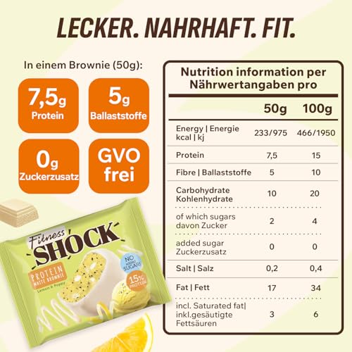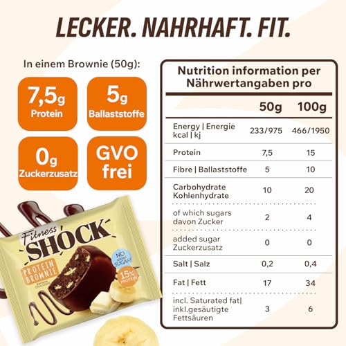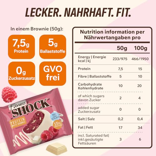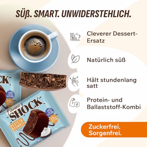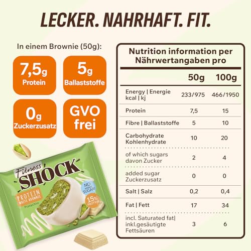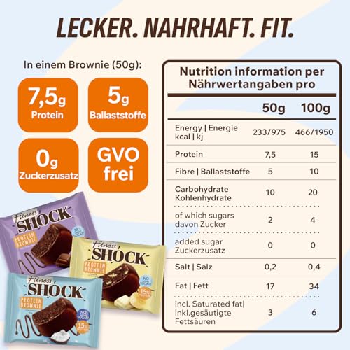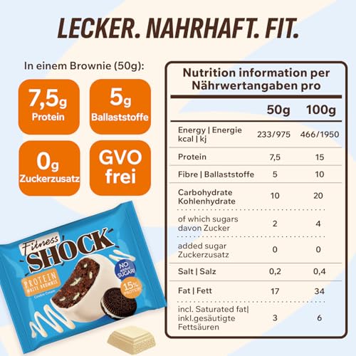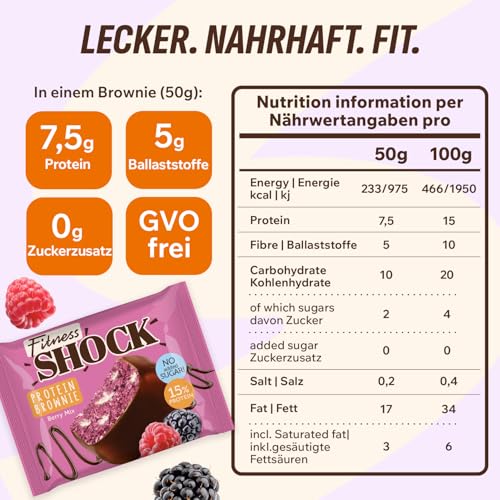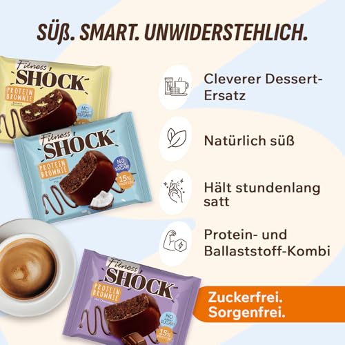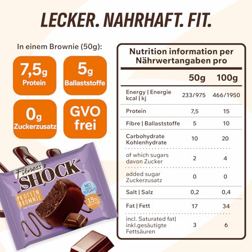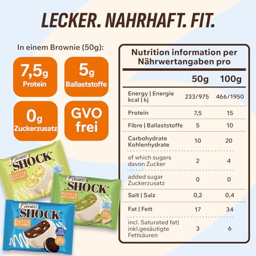 FitnesSHOCK’s Brownies verbinden köstlichen Geschmack mit hochwertigen Zutaten, einem hohen Proteingehalt und kalorienbewusster Süße. Gönnen Sie sich diesen leckeren und praktischen Snack, der sowohl für Fitnessliebhaber als auch für Naschkatzen geeignet ist. Probieren Sie FitnesSHOCK und erleben Sie, wie Genuss und Gesundheit Hand in Hand gehen!