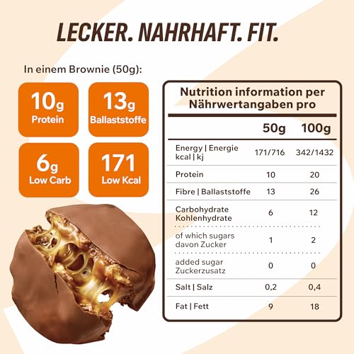 Mit einer höheren Proteinmenge stellen unsere Brownies eine hervorragende Alternative zu herkömmlichen Supermarkt-Desserts wie Cupcakes, Muffins und Soufflés dar. Genießen Sie einen süßen Snack, der Sie unterstützt, ohne Ihr Fitnessziel aus den Augen zu verlieren. Der hohe Proteingehalt hilft dabei, Ihre Muskeln zu regenerieren und den Hunger nach dem Training zu stillen.