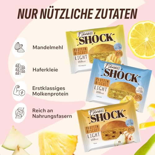 FitnesSHOCK verwendet eine erstklassige Mischung aus Milch- und Molkenproteinen, kombiniert mit feinem Mandelmehl und nährstoffreicher Haferkleie. Die natürliche Vanille rundet das Geschmackserlebnis perfekt ab und sorgt für ein authentisches Dessertgefühl, das Sie lieben werden. Diese Zutaten sorgen nicht nur für einen herrlich leckeren Geschmack, sondern tragen auch zu Ihrer täglichen Nährstoffaufnahme bei.