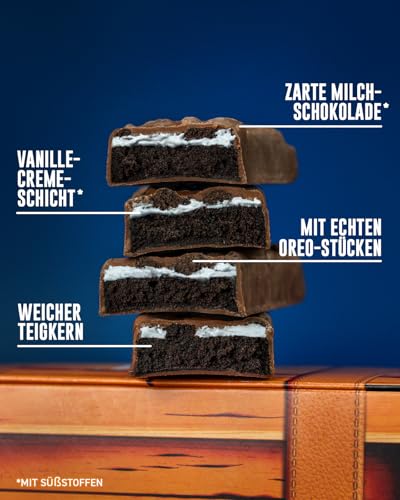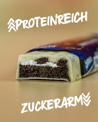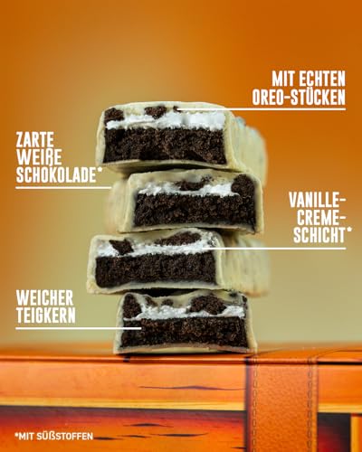 Entdecken Sie unseren einzigartigen Dreischicht-Riegel, der mit echtem OREO Vanille und proteinreichem Nugat gefüllt ist. Dieser Riegel vereint den köstlichen Geschmack von OREO-Kakao und ist mit einer Schicht aus zuckerfreiem OREO-Krümel umhüllt. Perfekt für alle, die nicht nur auf ihren Genuss, sondern auch auf ihre Gesundheit achten möchten.