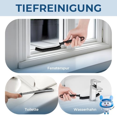 Die Cleangor Fugenbürste ist nicht nur auf die Reinigung von Fugen beschränkt. Sie eignet sich hervorragend für die Pflege einer Vielzahl von Oberflächen: ob Fensterschienen, Jalousien, Türschienen, oder Wasserhähne – diese Bürste meistert viele Aufgaben im Haushalt. Auch bei der Reinigung von Autos, Öfen, Waschbecken, Böden oder sogar Tastaturen und Möbeln erweist sie sich als äußerst nützlich. Egal ob in der Küche, im Bad oder im Außenbereich – die Cleangor Bürste macht überall einen sauberen Eindruck.
