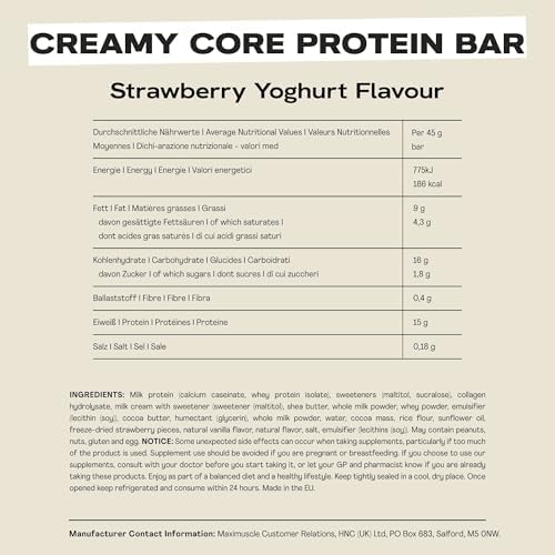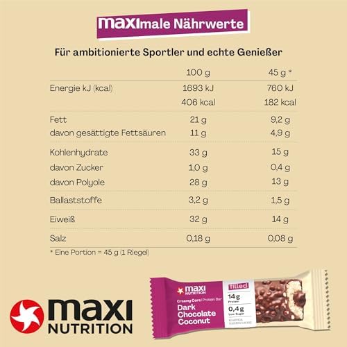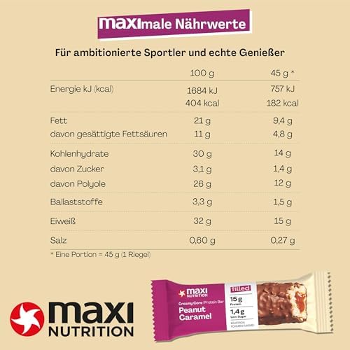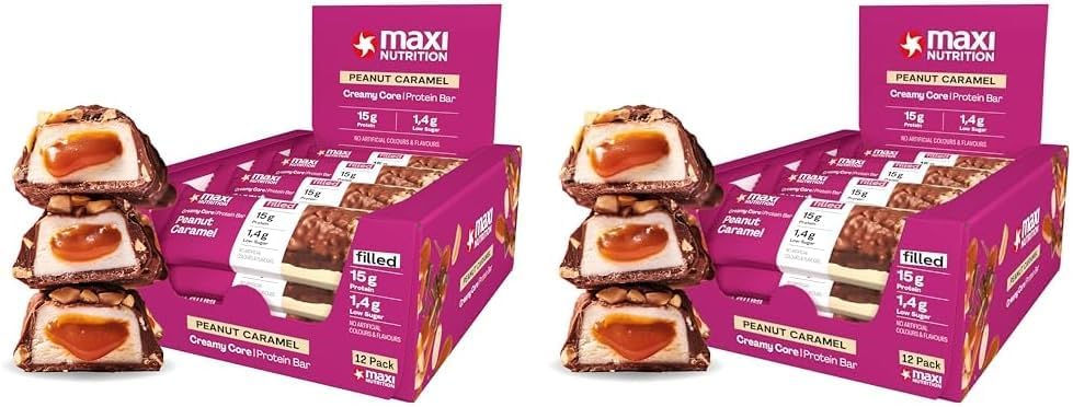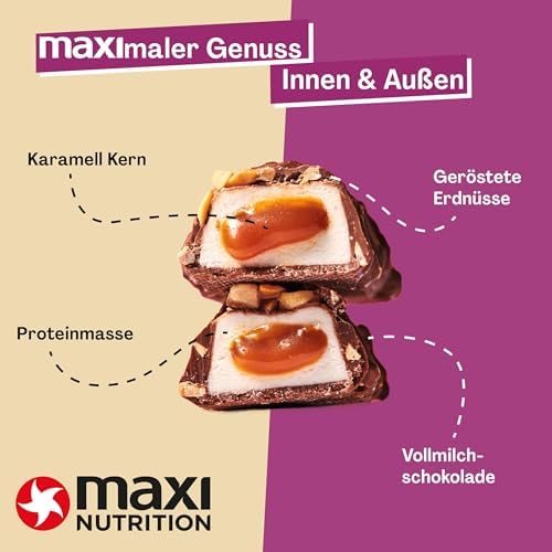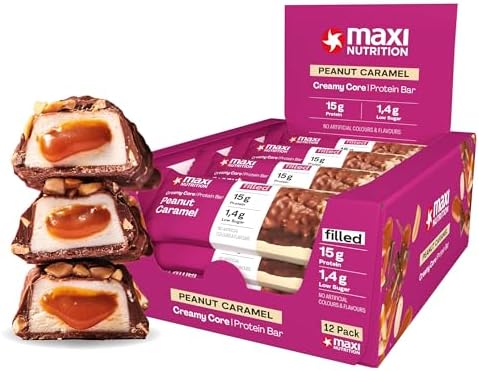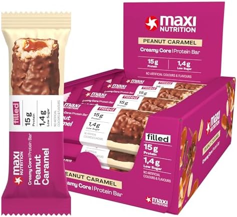 MaxiNutrition Creamy Core Bar Erdnuss-Karamell – 12x45g Proteinriegel, 32% Eiweiß, wenig Zucker für Sport und SnackgenusMaxiNutrition Creamy Core Bar Erdnuss-Karamell – 12x45g Proteinriegel, 32% Eiweiß, wenig Zucker für Sport und Snackgenus