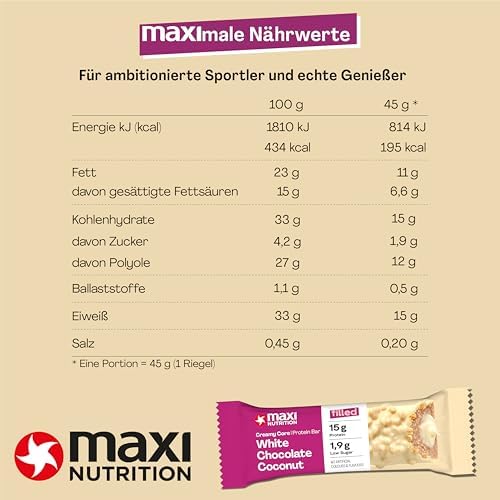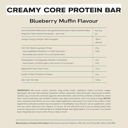 Jeder Riegel enthält beeindruckende 15g Eiweiß und hat damit einen Proteinanteil von 32%. Diese hohe Eiweißkonzentration unterstützt nachweislich den Aufbau sowie den Erhalt von Muskelmasse und macht die Riegel zu einem idealen Snack für Fitnessbegeisterte. Perfekt für den Genuss nach dem Workout, um die Muskulatur optimal zu unterstützen!