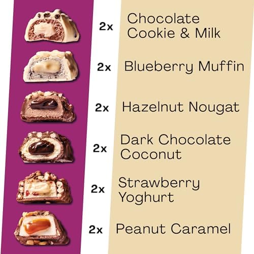 Die Creamy Core Protein Bars bieten eine außergewöhnliche Vielfalt an Geschmäckern, von schokoladig bis fruchtig, und sogar komplett vegan. Jeder Biss ist ein Genuss, dank des einzigartigen flüssigen Kerns, der von einer delikaten Schokoladenhülle umgeben ist. Die unterschiedlichen Geschmacksrichtungen setzen neue Maßstäbe in der Proteinriegel-Kategorie und bieten für jeden Geschmack das passende Erlebnis!
