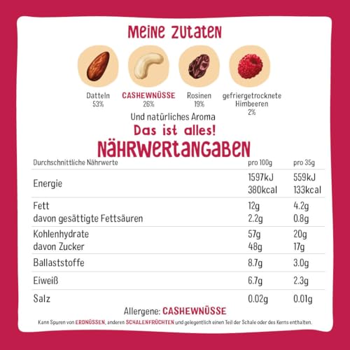 Wir legen großen Wert auf Reinheit und Qualität. Alle Zutaten sind glutenfrei, milchfrei und somit ideal für Veganer geeignet. Zusätzlich sind unsere Snacks raw und kaltgepresst, was bedeutet, dass sie nicht nur nahrhaft, sondern auch besonders schonend zubereitet sind. Ein hoher Ballaststoffanteil unterstützt eine gesunde Ernährung, während wir auf Konservierungsstoffe und Farbstoffe gänzlich verzichten.