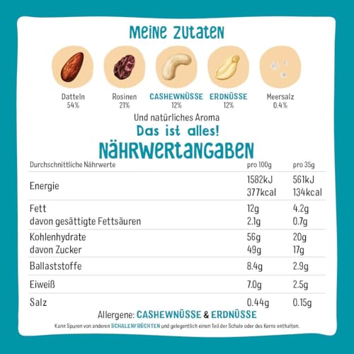 Nākd. Gesalzene Karamell Riegel | 100% natürliche Zutaten | Vegan & glutenfrei | Perfekt für unterwegs | 18 x 35gNākd. Gesalzene Karamell Riegel | 100% natürliche Zutaten | Vegan & glutenfrei | Perfekt für unterwegs | 18 x 35g