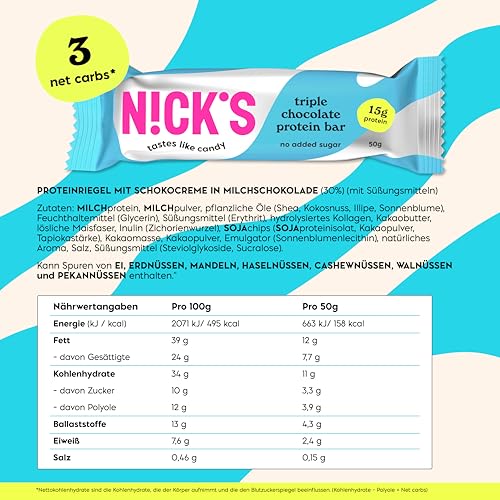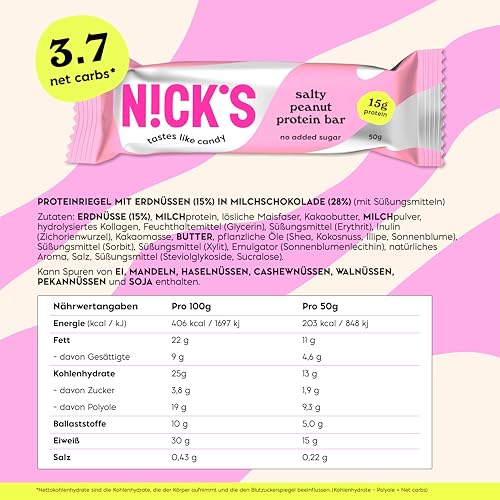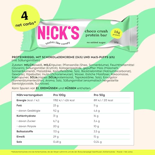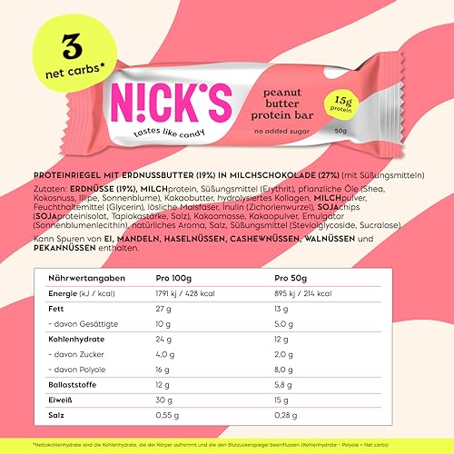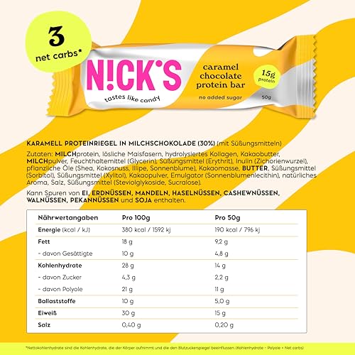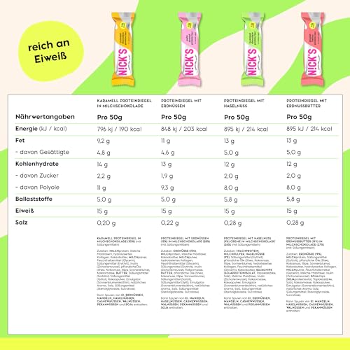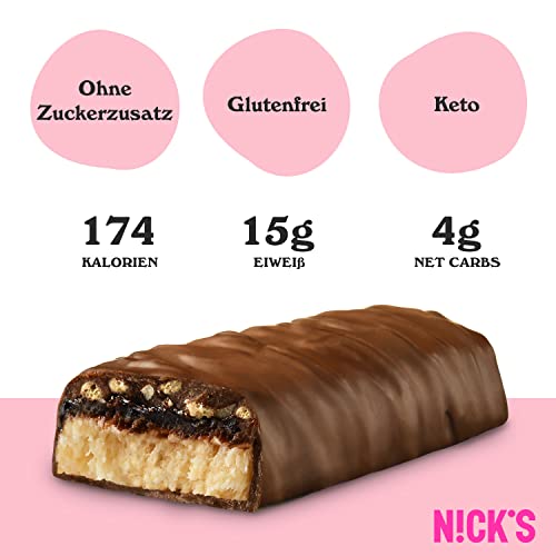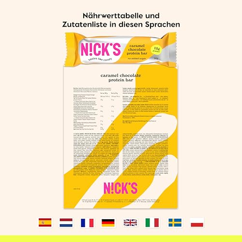 NICKS Protein Riegel Erdnuss Karamell – 15g Eiweiß, Low Carb Snack für Fitness & Gesundheit – Glutenfrei, ohne Zucker 12NICKS Protein Riegel Erdnuss Karamell – 15g Eiweiß, Low Carb Snack für Fitness & Gesundheit – Glutenfrei, ohne Zucker 12