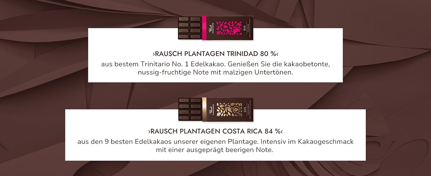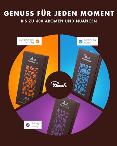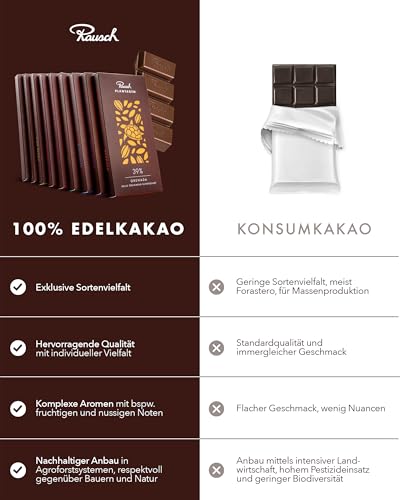 Als Familienunternehmen aus Berlin steht RAUSCH seit über 100 Jahren für Tradition, Fair Trade und nachhaltige Produktion. Unsere Leidenschaft für besondere Schokolade führt uns ständig zu neuen Höhepunkten des Geschmacks und der Reinheit. Gönnen Sie sich und Ihren Liebsten eine Tafel dieses Meisterwerks der Schokoladenkunst!